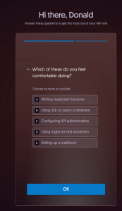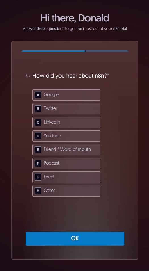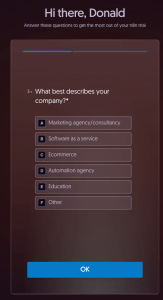 The sign-up flow is refreshingly light. Email, name, password. Then a five-question survey about your role, company size, and automation experience. Nothing felt invasive, and you can tell they’re segmenting users to customize the onboarding experience.